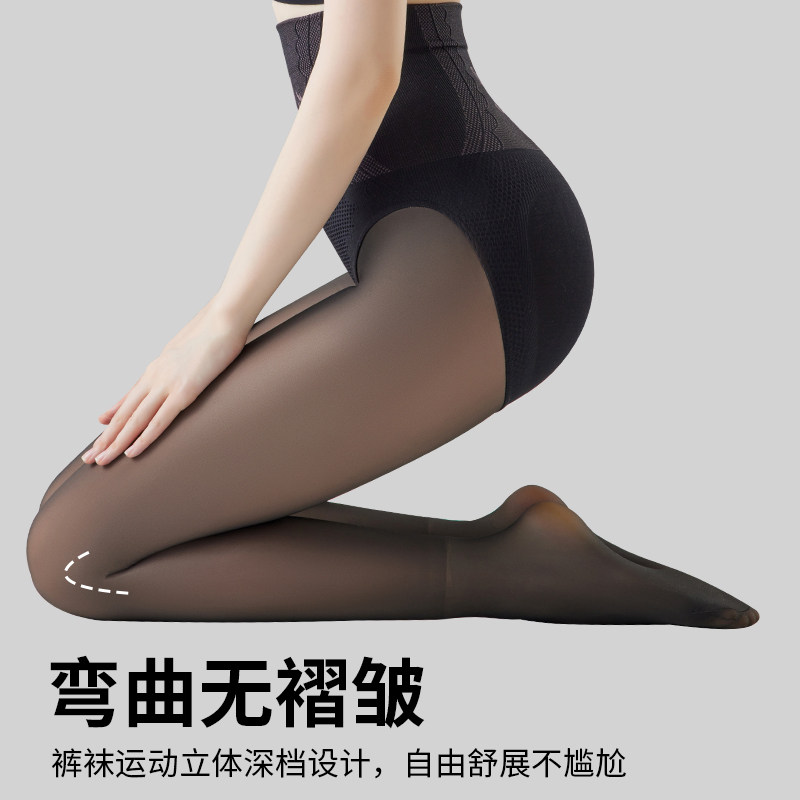 黑透肤一体光腿神器女春秋薄款 小个子 假透肉水光丝袜高腰打底裤