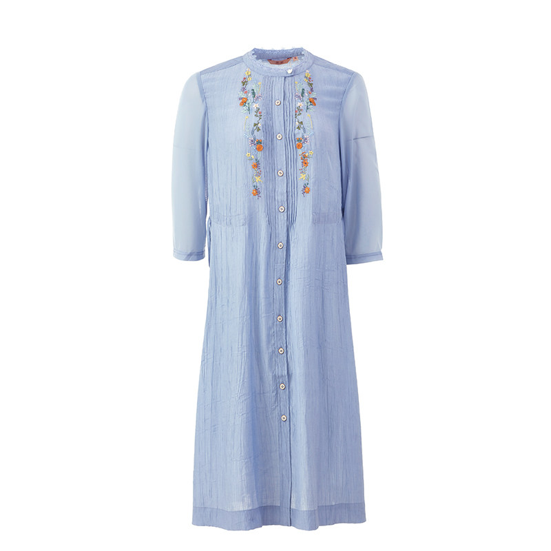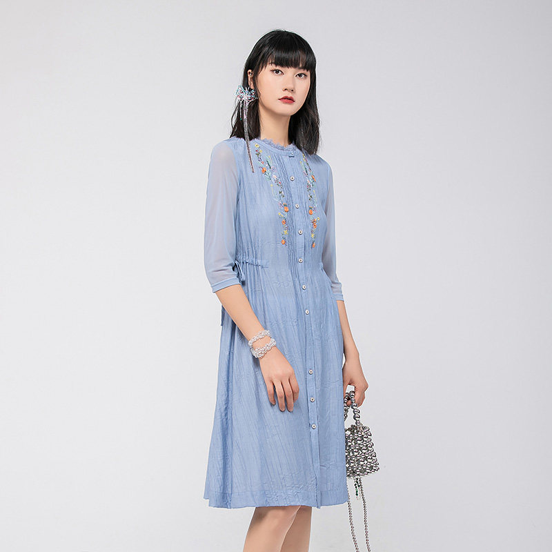 女开扣抽绳微绉休闲连衣裙舒适FGGA0051 女2024年新款 渔牌女装 春装