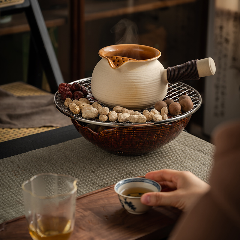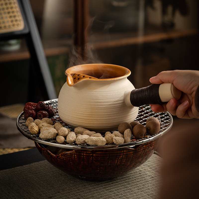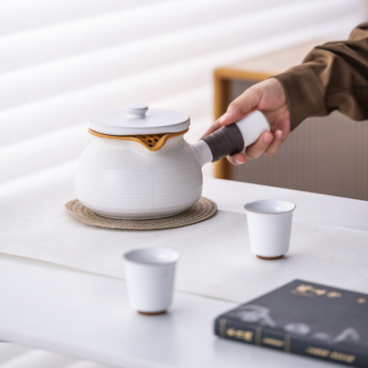 柴烧围炉煮茶壶温茶提梁侧把壶复古手提粗陶简约茶具水壶中式 泡茶