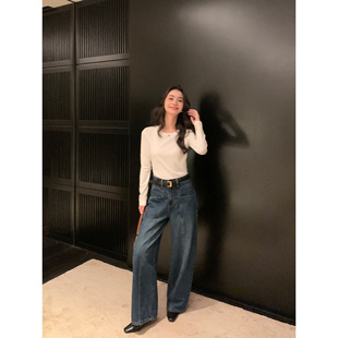 女基础内搭长袖 白色圆领针织打底衫 t恤上衣 松弛感天菜 pusumede