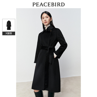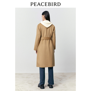 太平鸟女装 驼绒水波纹大衣A1AAD4337 大师甄绒系列浴袍式