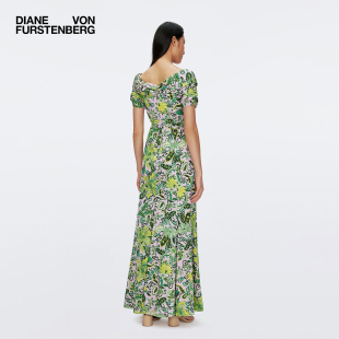 DVF绿色度假一字领佩斯利印花长裙连衣裙DS1S046