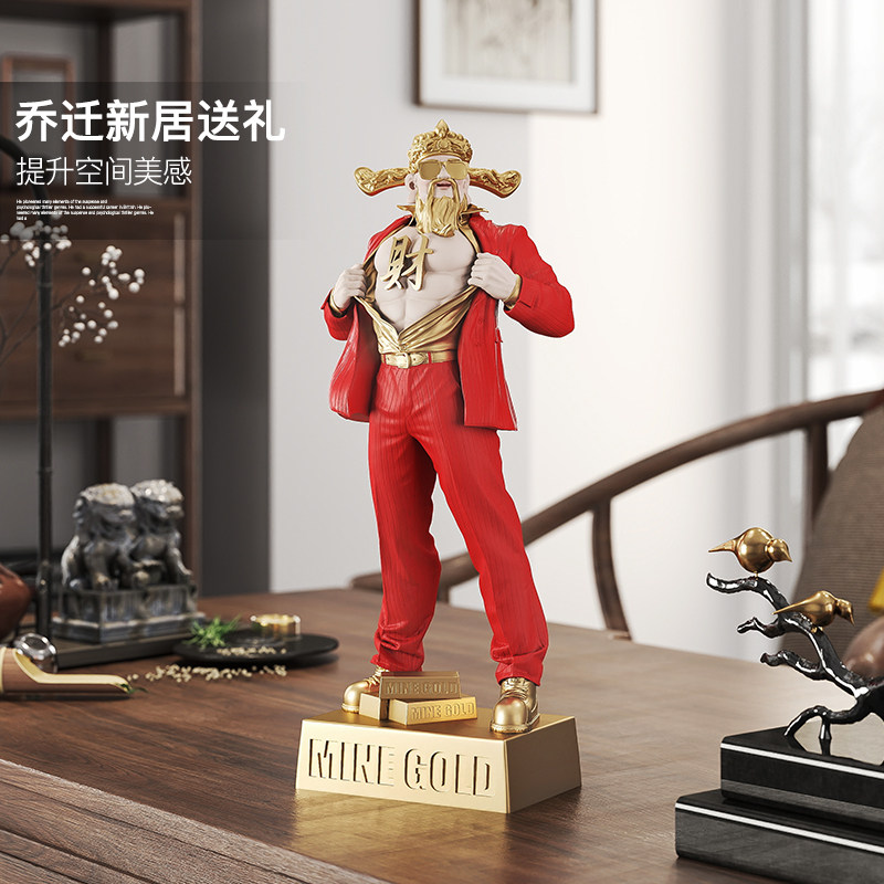 肌肉财神爷摆件客厅酒柜家居装 饰品龙年玄关桌面新年乔迁开业礼物