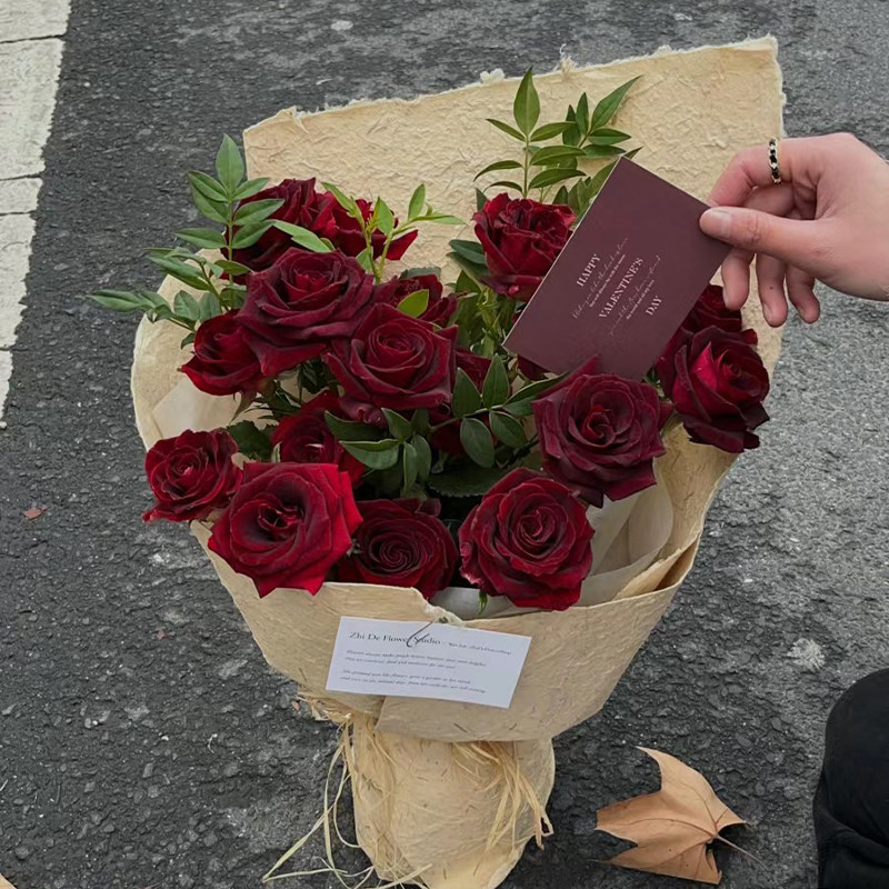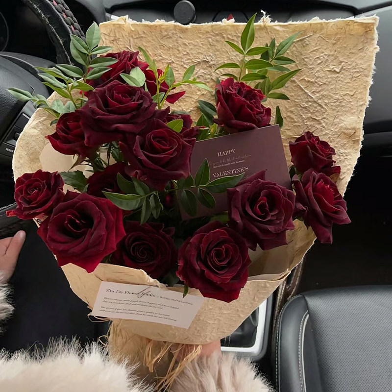 黑巴克丝绒高级玫瑰花束包装 纸复古红玫瑰氛围包花纸花艺艺术纸