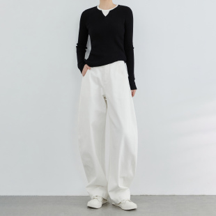 显瘦休闲弯刀裤 拖地裤 女 小个子白色牛仔裤 奕兮宽松显瘦阔腿香蕉裤