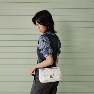 欧时纳华夫腋下包2025新款 山茶花菱格小香风链条女士单肩斜挎包