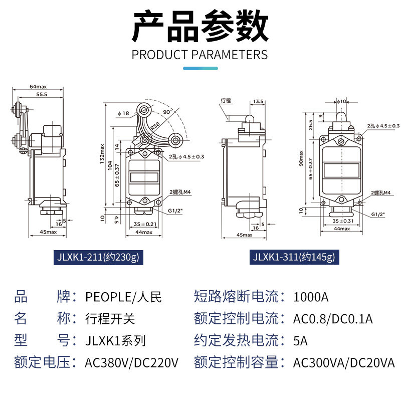 111 511 211 411 行程限位开关YBLX 311 德力西行程开关JLXK1