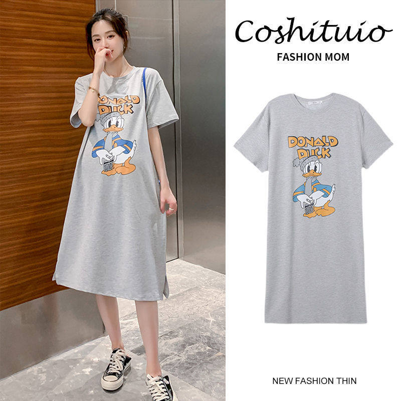 宽松t恤孕妇哺乳裙子夏天 哺乳连衣裙过膝时尚 孕妇哺乳裙夏装 韩版