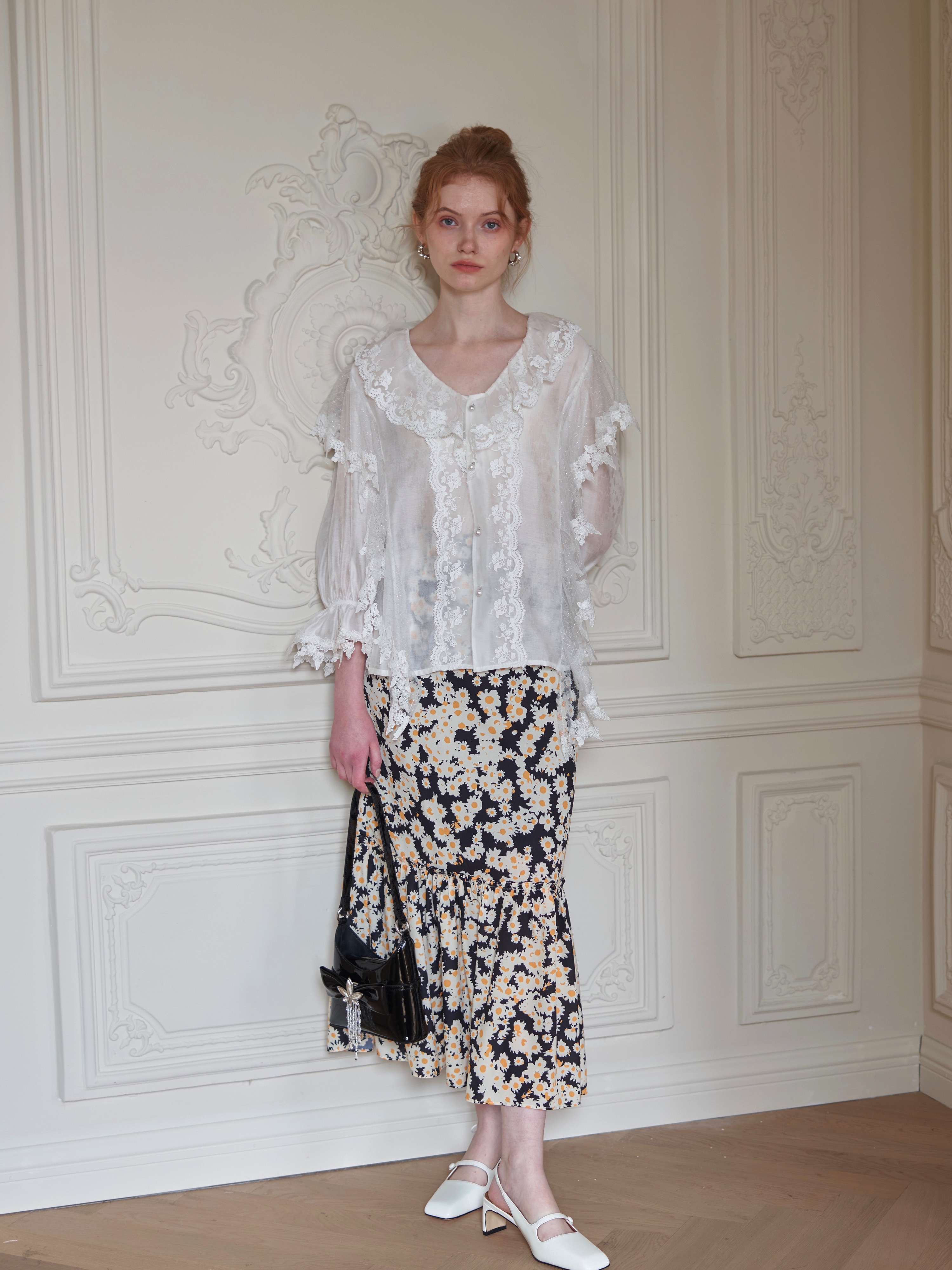 设计感小众上衣休闲夏季 星山袋 女新款 复古宫廷风蕾丝白衬衫 法式