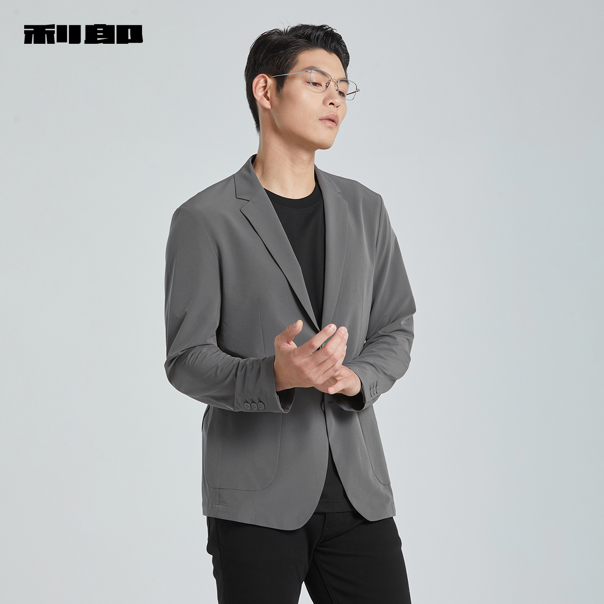 ELI 真丝羊毛混纺平驳领釉面牛角扣休闲西服外套男春秋 杜松