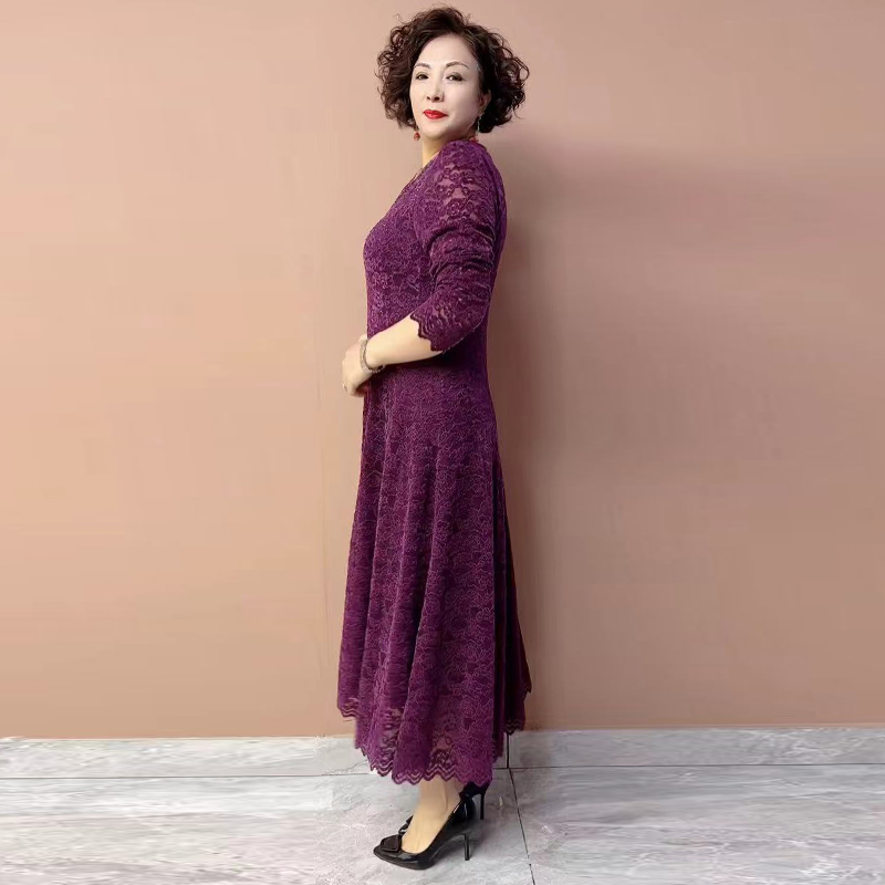 柒院家微胖大码 连衣裙2025秋宽松遮肉显瘦中长裙 女拼接网纱七分袖