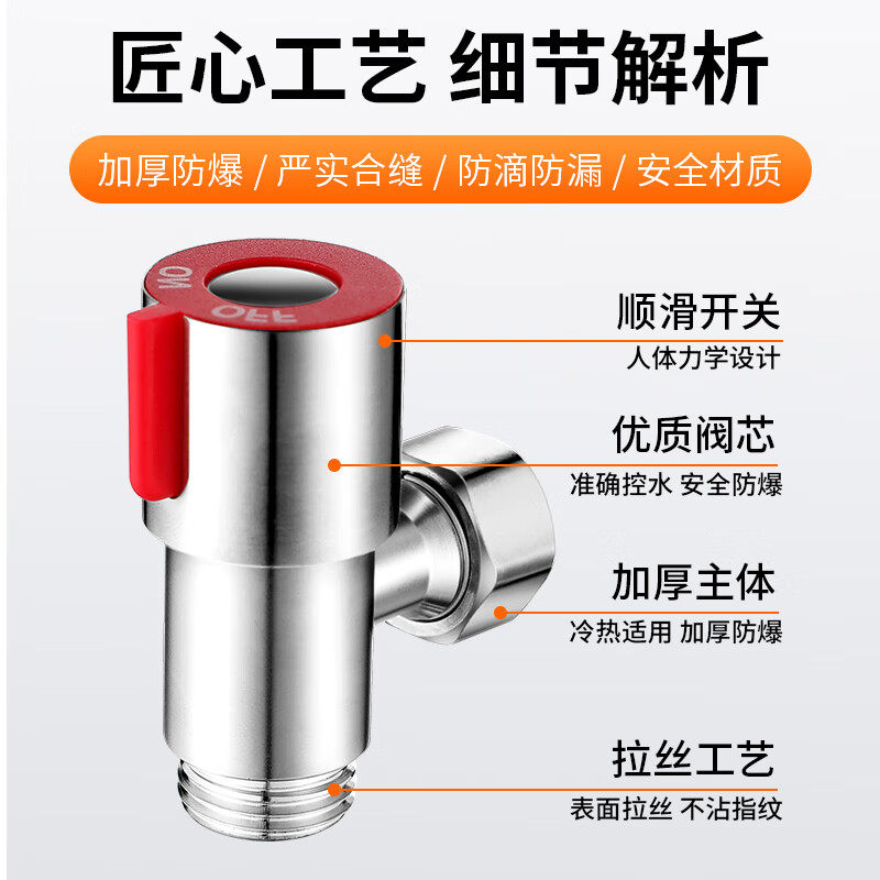全铜三角阀4分冷热水止水阀门家用304不锈钢热水器马桶开关通用
