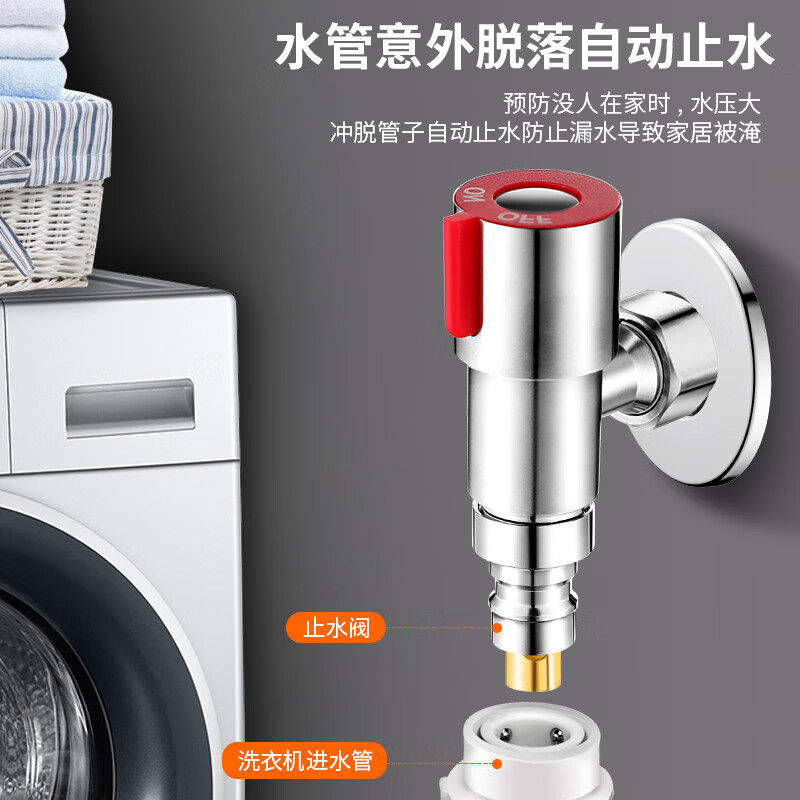 不锈钢三通角阀一进二出水龙头双开关一分二双用洗衣机接头三角阀