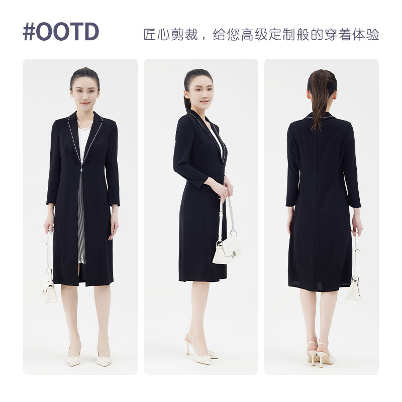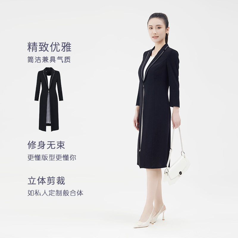 酒立领收腰连衣裙女 中长裙2025秋冬新款 兰卡时尚 通勤气质职场长袖