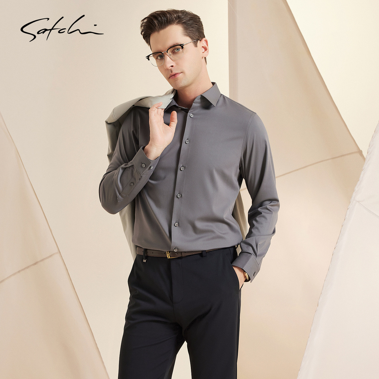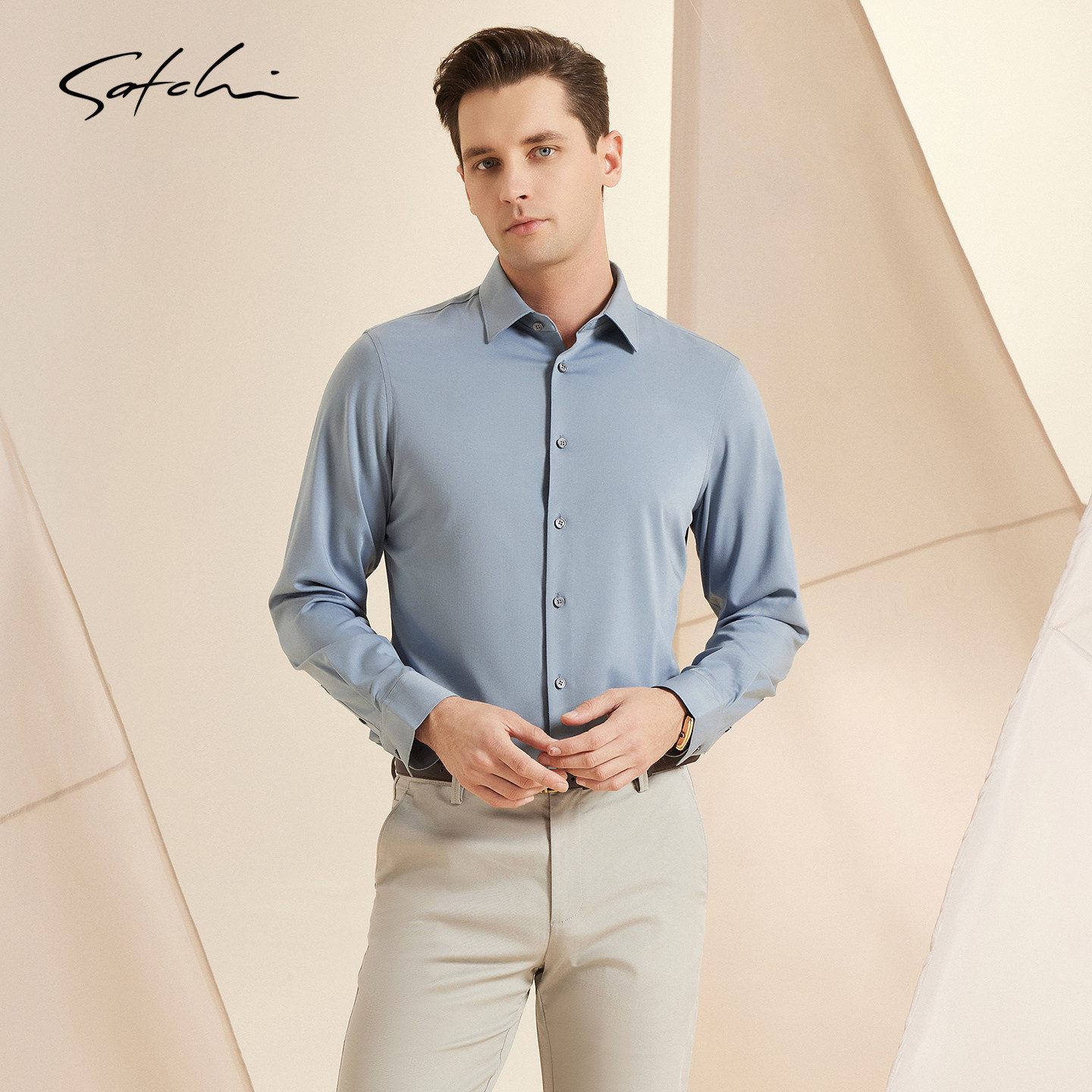 男士 长袖 衬衫 新款 SATCHI沙驰男装 春季 商务休闲结婚衬衣男 易去污