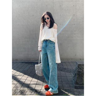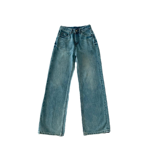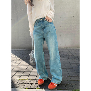 中高腰水洗蓝绿色阔腿宽松显瘦大长腿直筒牛仔裤 老米家 2026新款