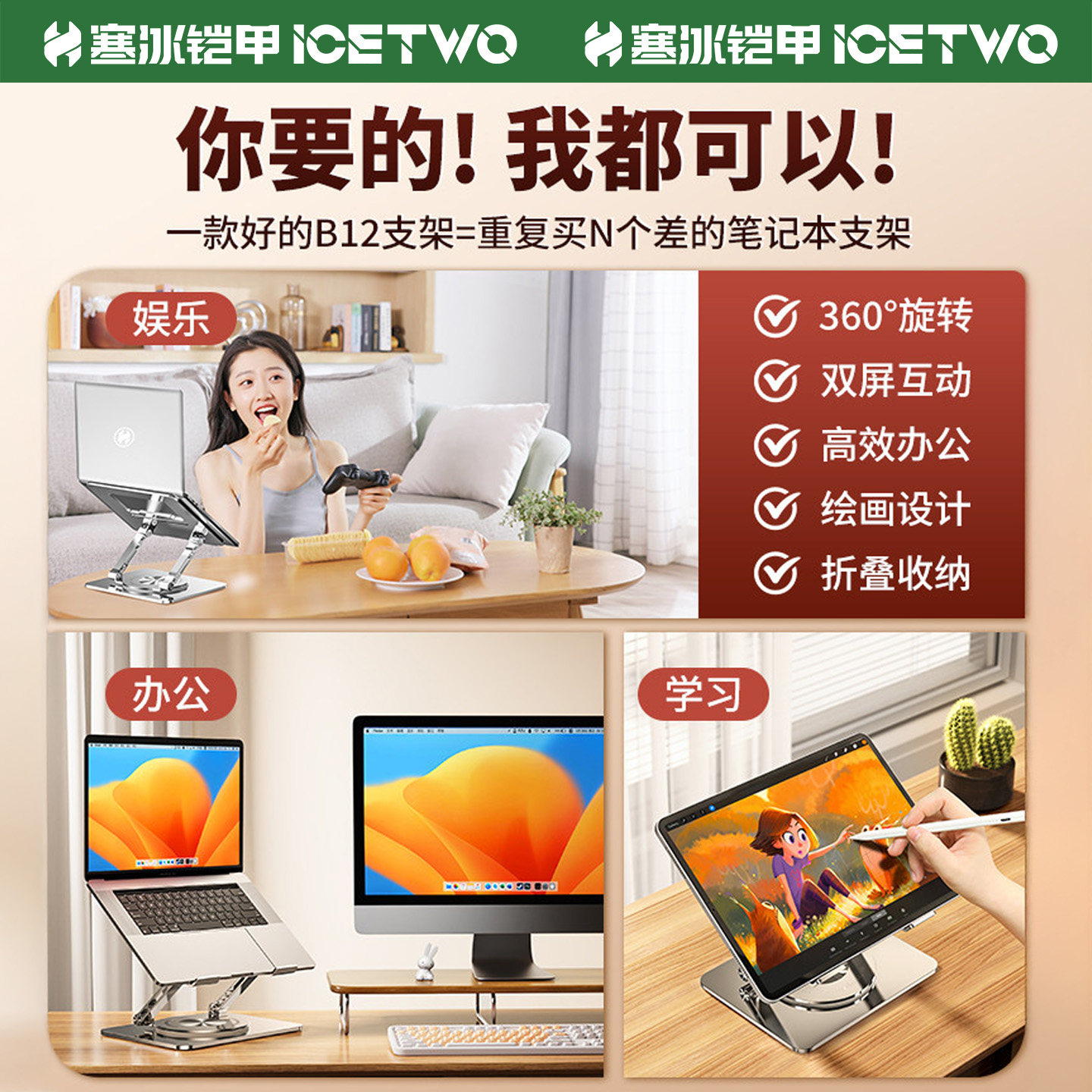 笔记本支架适用于苹果macbook可旋转桌面增高悬空升降折叠平板架子铝合金托架ipad支撑架华为pro电脑散热架