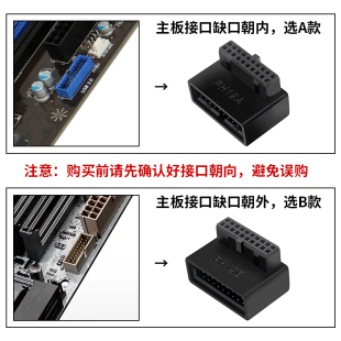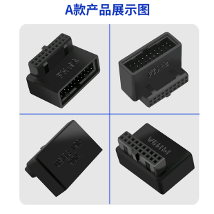 俊达利电脑USB3.0主板19PIN公转母直角90度弯头转接头机箱走背线前置插线端口USB3.1插口19针公对母3.2转换器