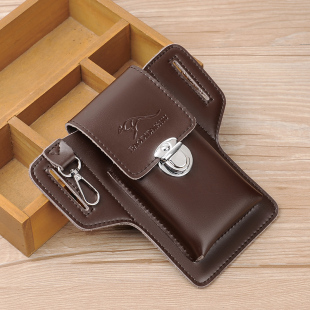 真皮手机包男款 头层牛皮单肩小包多功能穿皮带腰包工地干活用包包