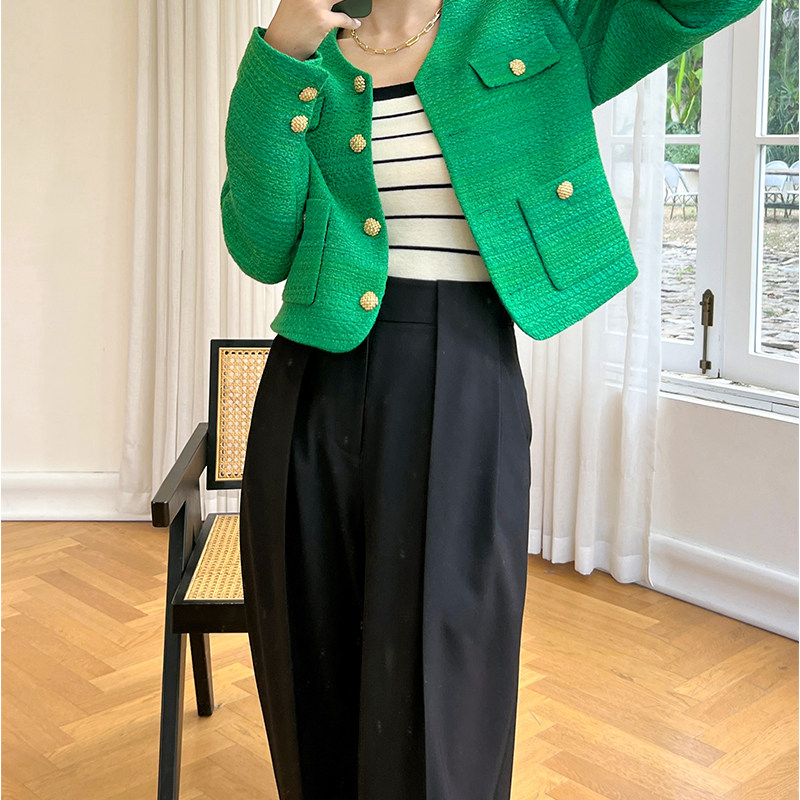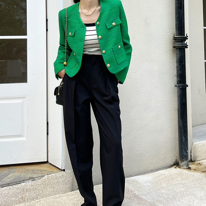 黄金比例黑色高腰西装 显瘦秋季 阔腿裤 压褶长裤 直筒宽松休闲裤 GUS