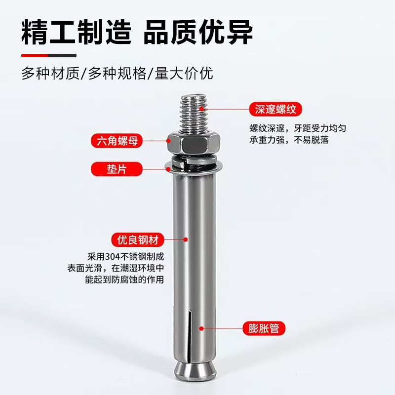 国标304 316不锈钢膨胀螺丝螺栓加长拉爆膨胀管钉外管M6M8M10 201