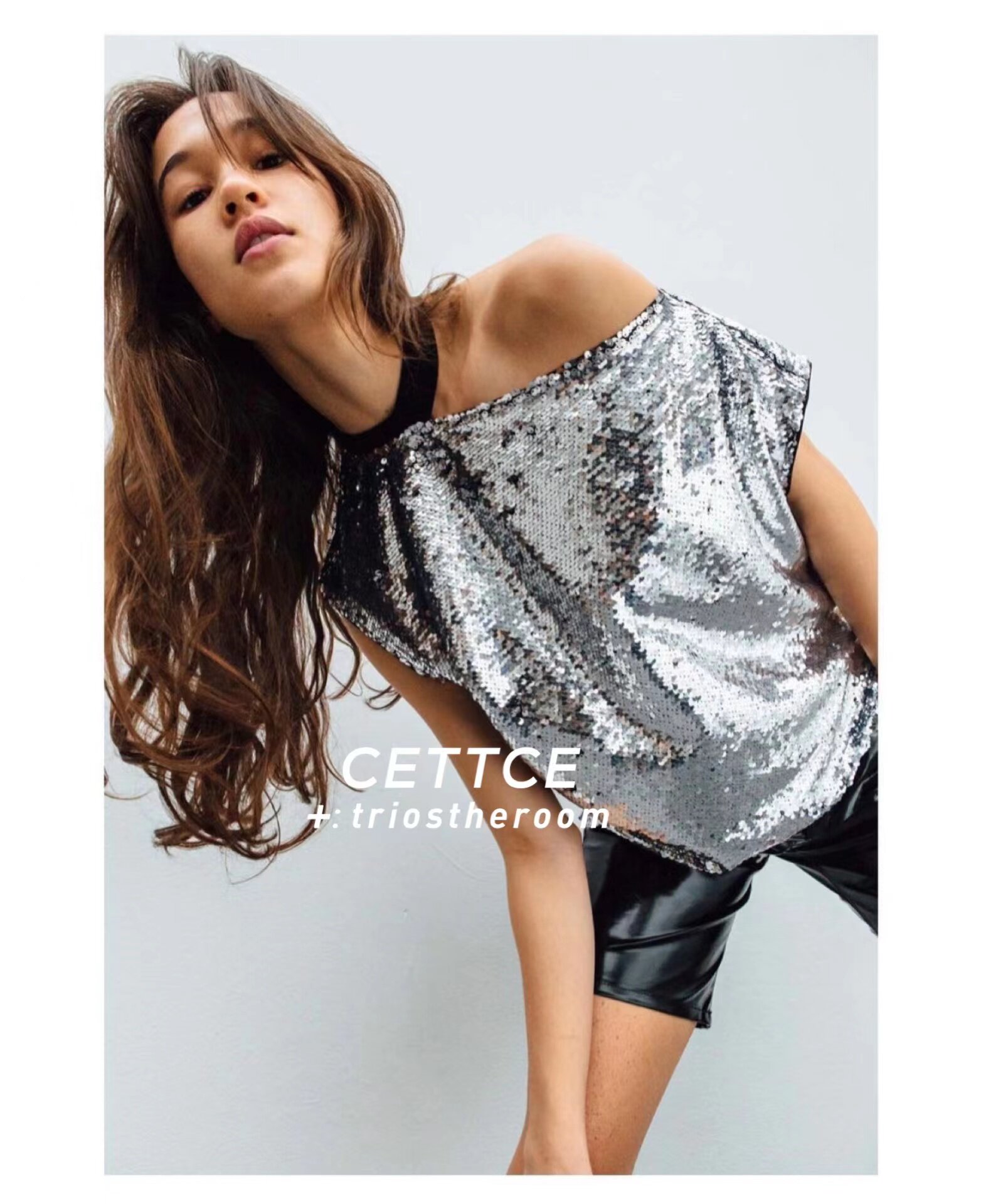 SALE 不对称棉质亮片解构风短袖 CETTCE RTA 上衣 折扣现货