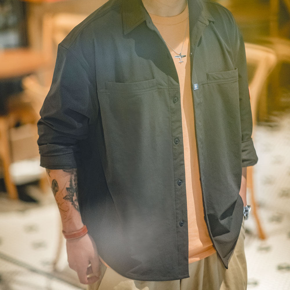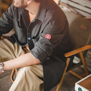 休闲抗皱免烫宽松长袖 美式 衬衣外套男秋 山系深灰口袋衬衫 马登工装