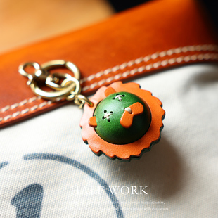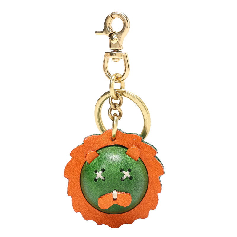 HALF 牛皮手工钥匙挂扣包包配饰真皮精致铃铛卡通狮子头挂件 WORK