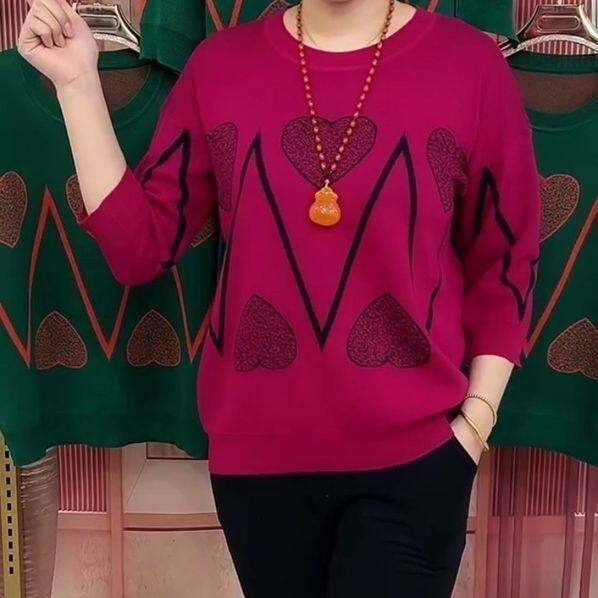 中袖 洋气小衫 上衣中老年女士大码 T恤女2025新款 七分袖 妈妈春秋装