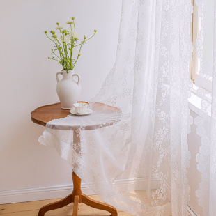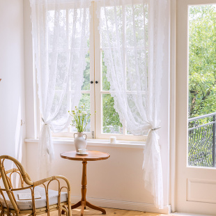 免打孔魔术贴窗帘窗纱帘法式 白色蕾丝客厅阳台飘窗门帘隔断穿杆帘