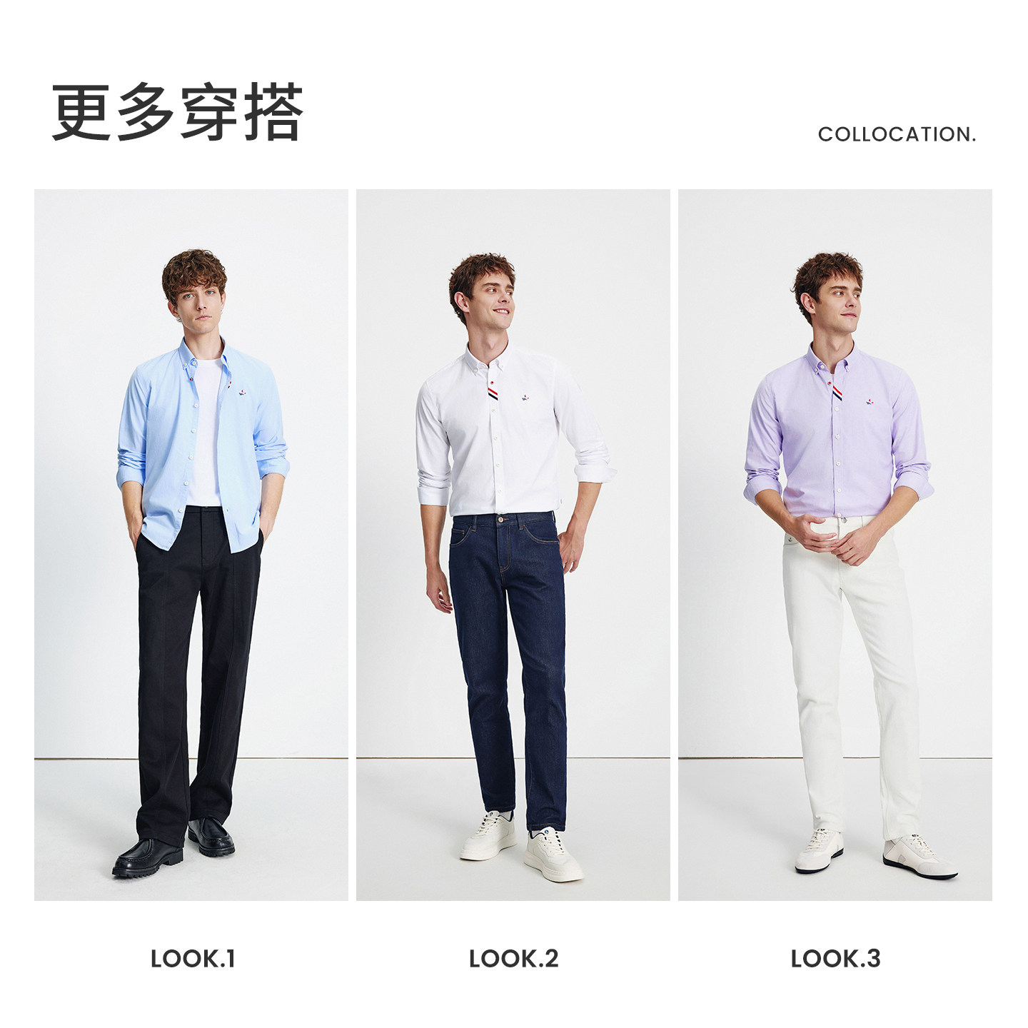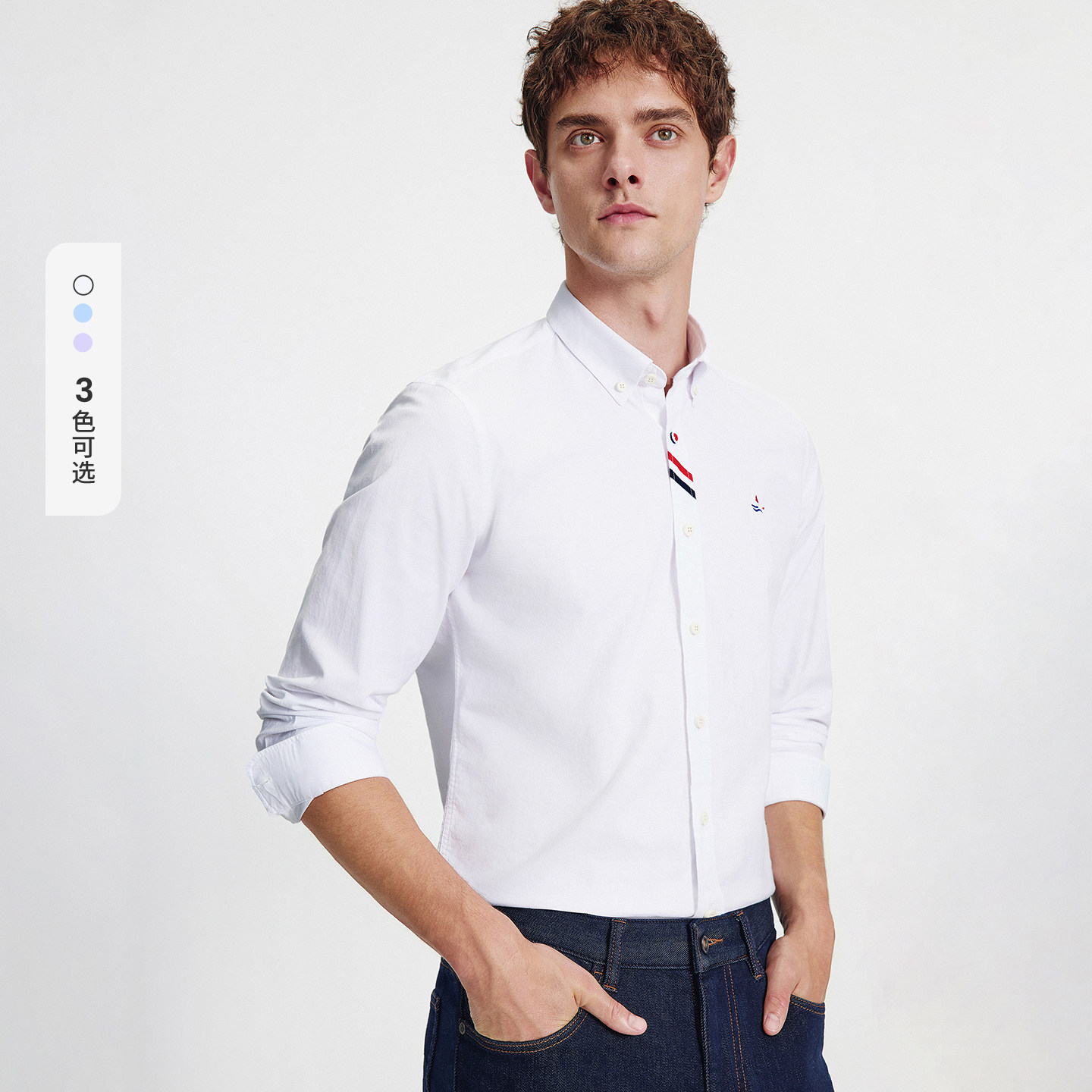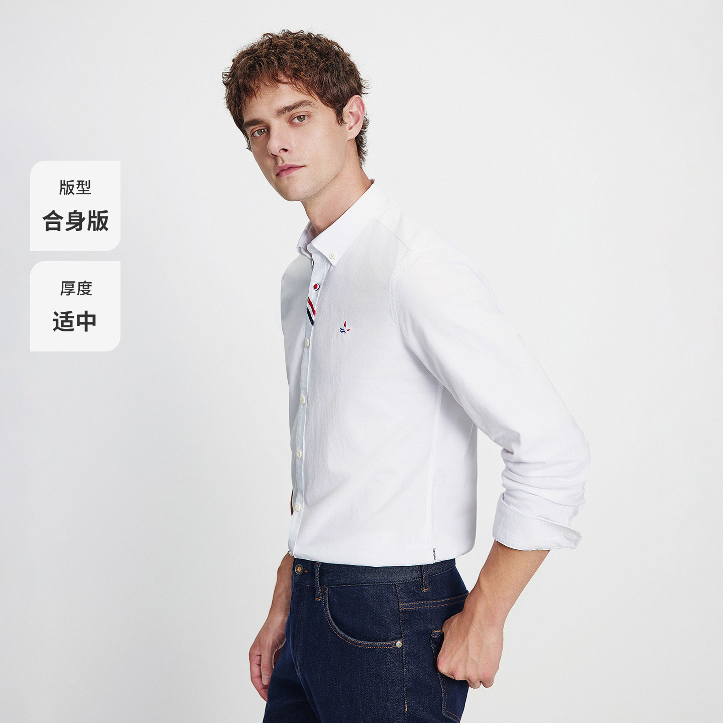 新款 男春季 牛津纺休闲棉衬衣 衬衫 Navigare意大利小帆船白色长袖