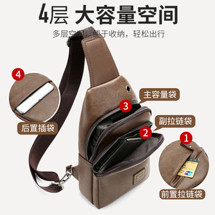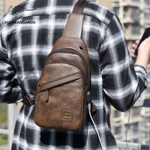 麦克袋鼠胸包男潮牌真皮多功能小背包斜肩挎包休闲男士 单肩斜挎包