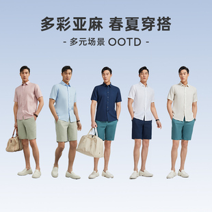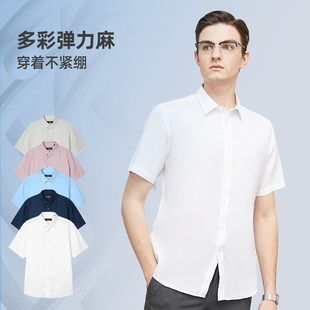 弹力麻 衬衫 雅戈尔夏季 官方商务休闲舒适透气亚麻短袖 4677 男士