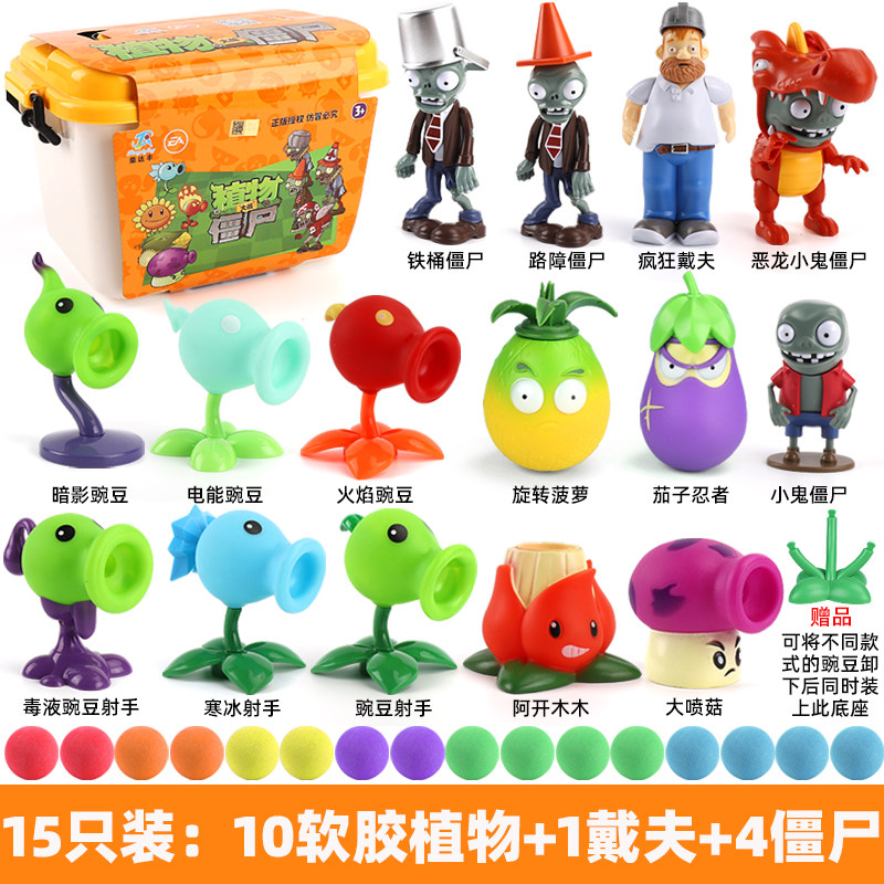 正版 儿童巨人僵尸男孩弹射 植物大战僵尸2玩具豌豆射手收纳箱套装