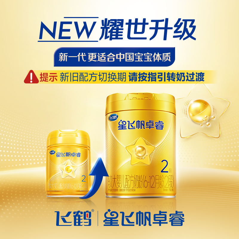 飞鹤卓睿2段乳铁蛋白婴幼儿配方奶粉750g 6罐专利HMO升级官方
