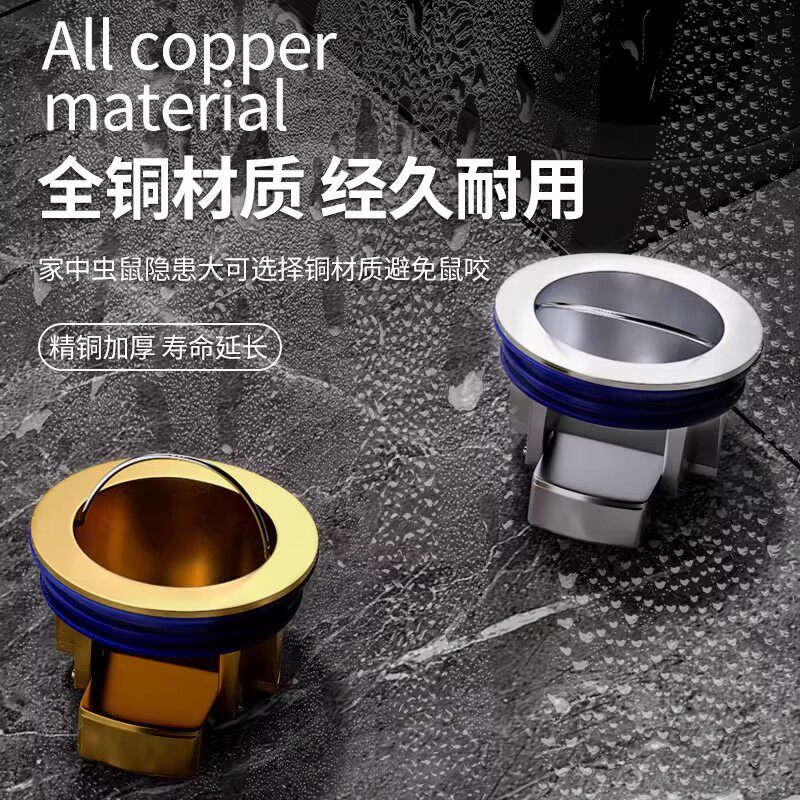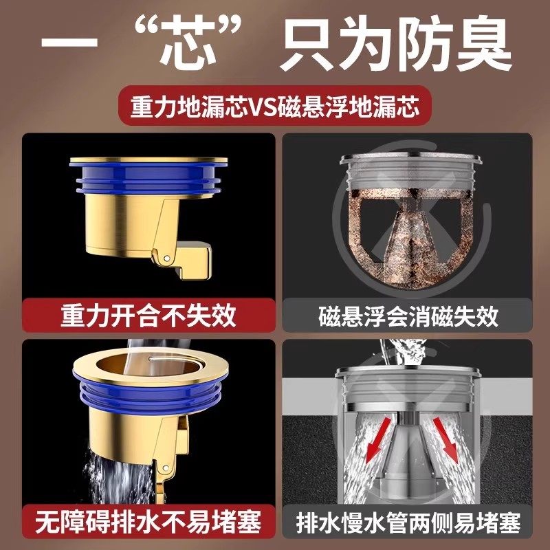 防臭地漏全铜内芯卫生间下水管道防返臭通用封口过滤网盖防虫神器
