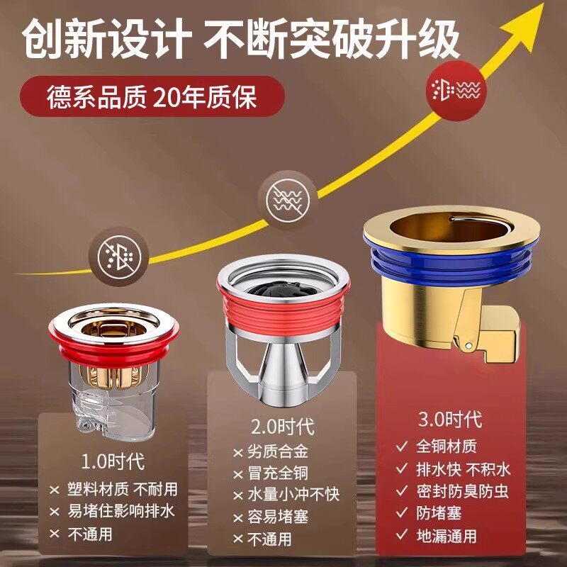 潜水艇全铜地漏防臭卫生间浴室通用大排量防堵器 政府补贴15%