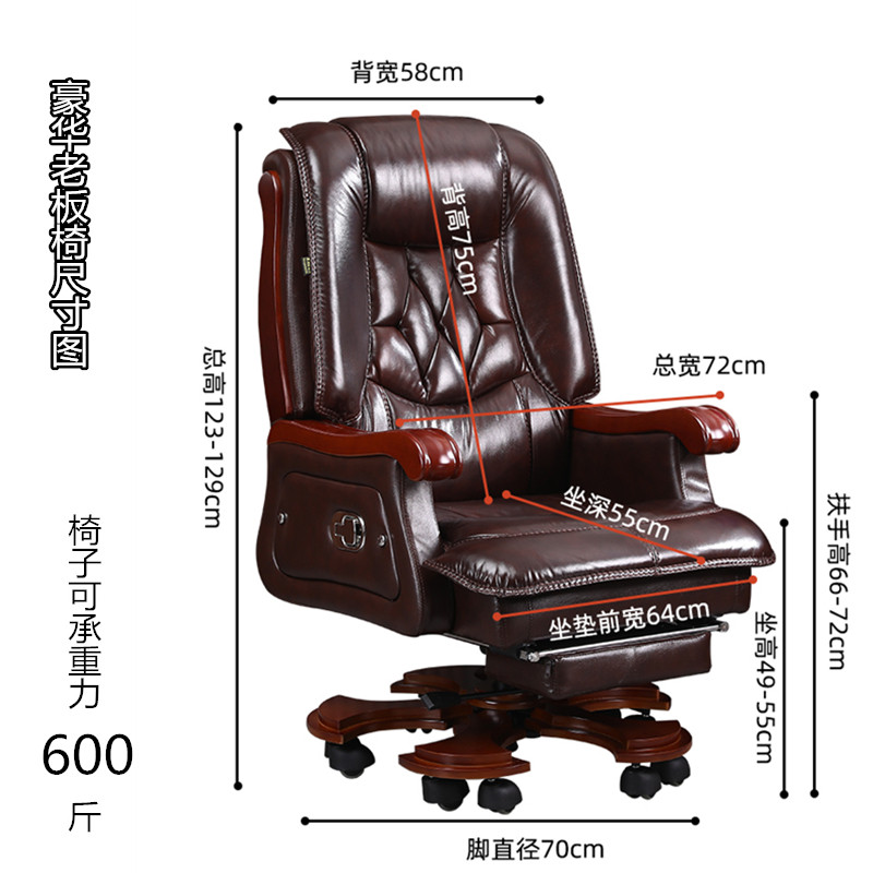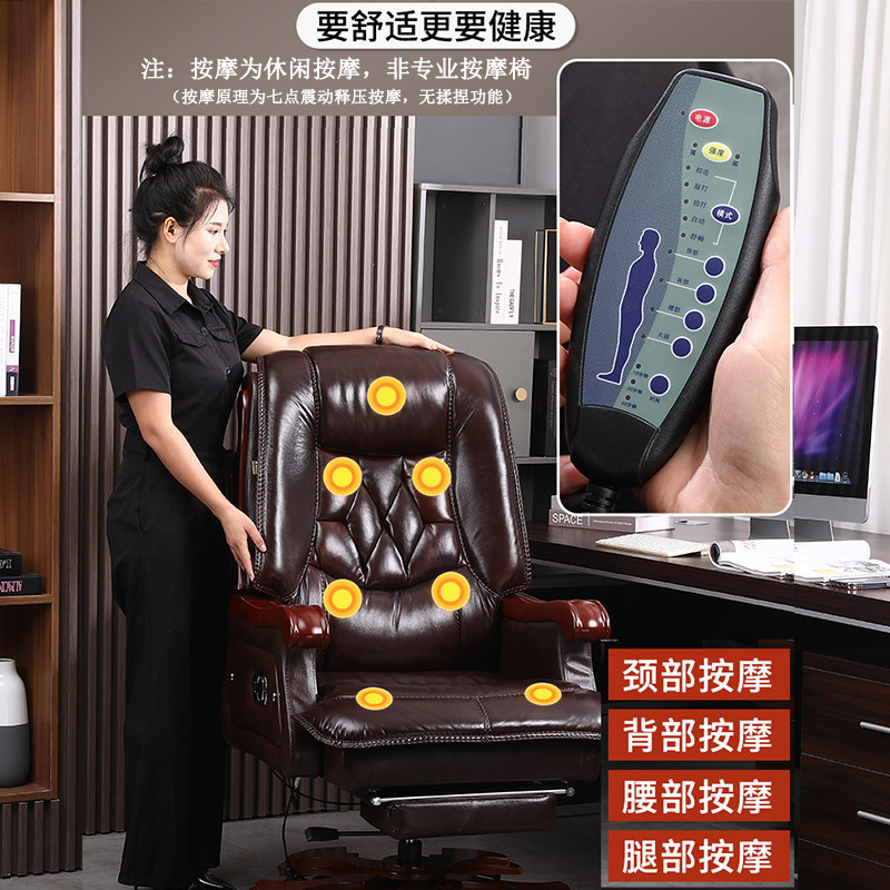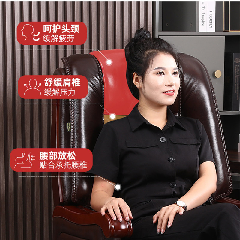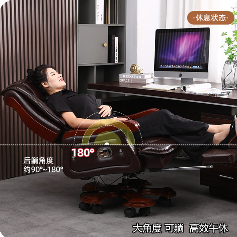 桦赫府高端真皮老板椅头层牛皮大班椅商务可躺办公椅实木按摩椅子
