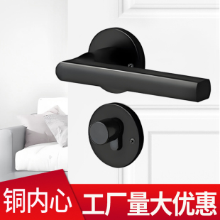 黑色卧室门锁静音内房间磁吸分体门锁实钢木门锁铁手新门用套装