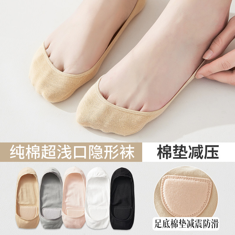 高跟鞋 纯棉隐形浅口透气防滑不掉跟棉垫款 袜子 薄款 袜子女船袜夏季