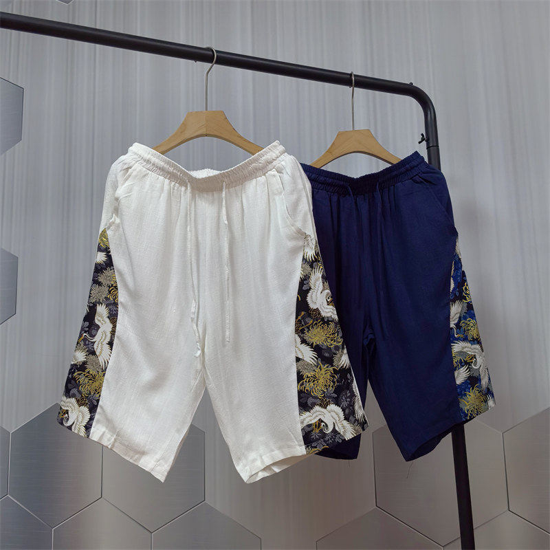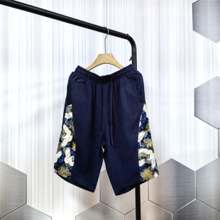 休闲裤 棉麻短裤 潮流宽松松紧沙滩裤 亚麻中裤 24C9D3夏季 五分裤 男士