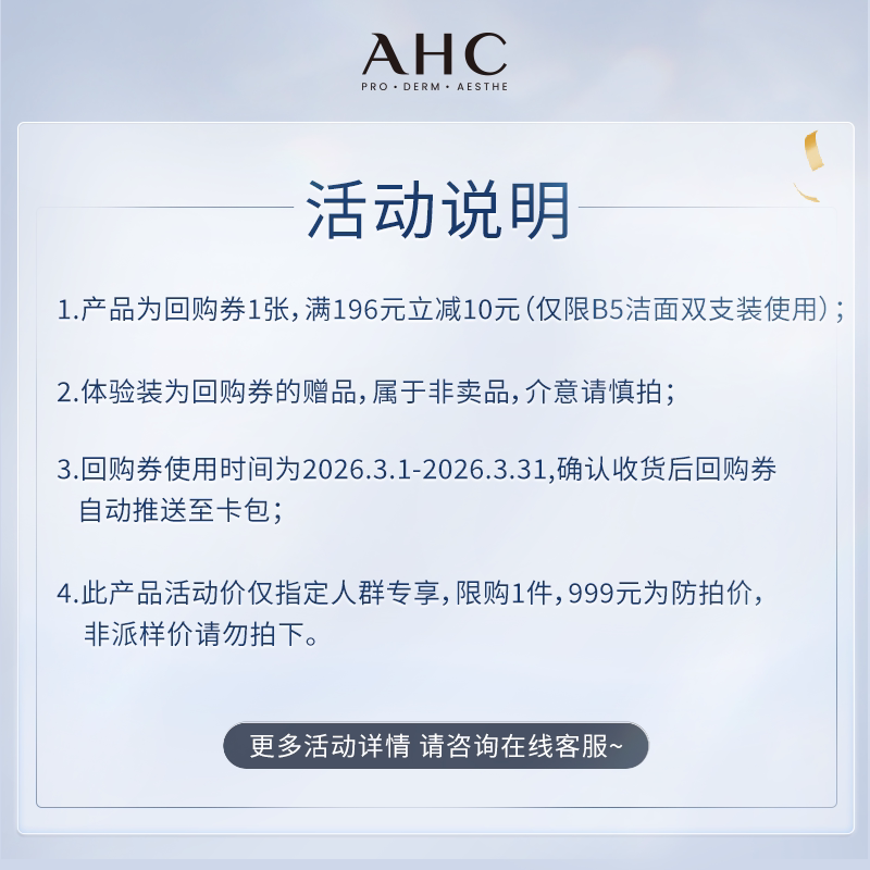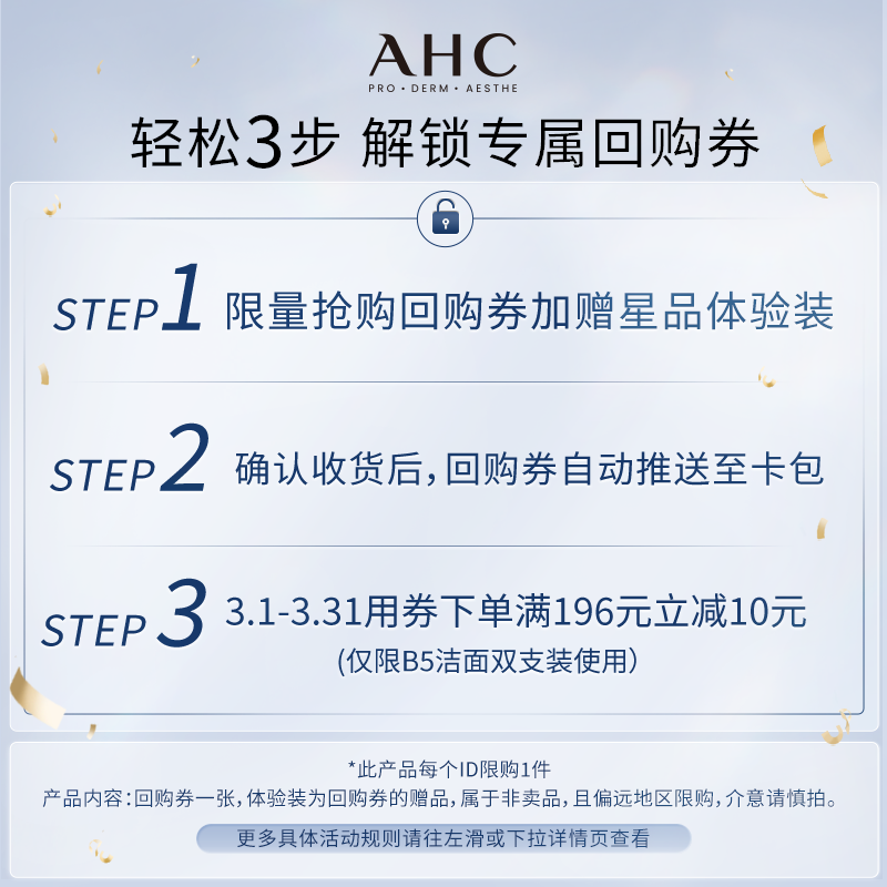 小样 AHC尝鲜礼B5洁面30ml 自播秒杀 惊喜回购券 9.9元