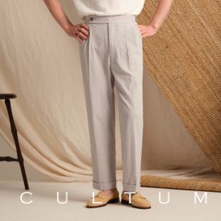 泡泡纱免熨烫轻感透气双褶休闲西裤 CULTUM意式 男 零重感可机洗