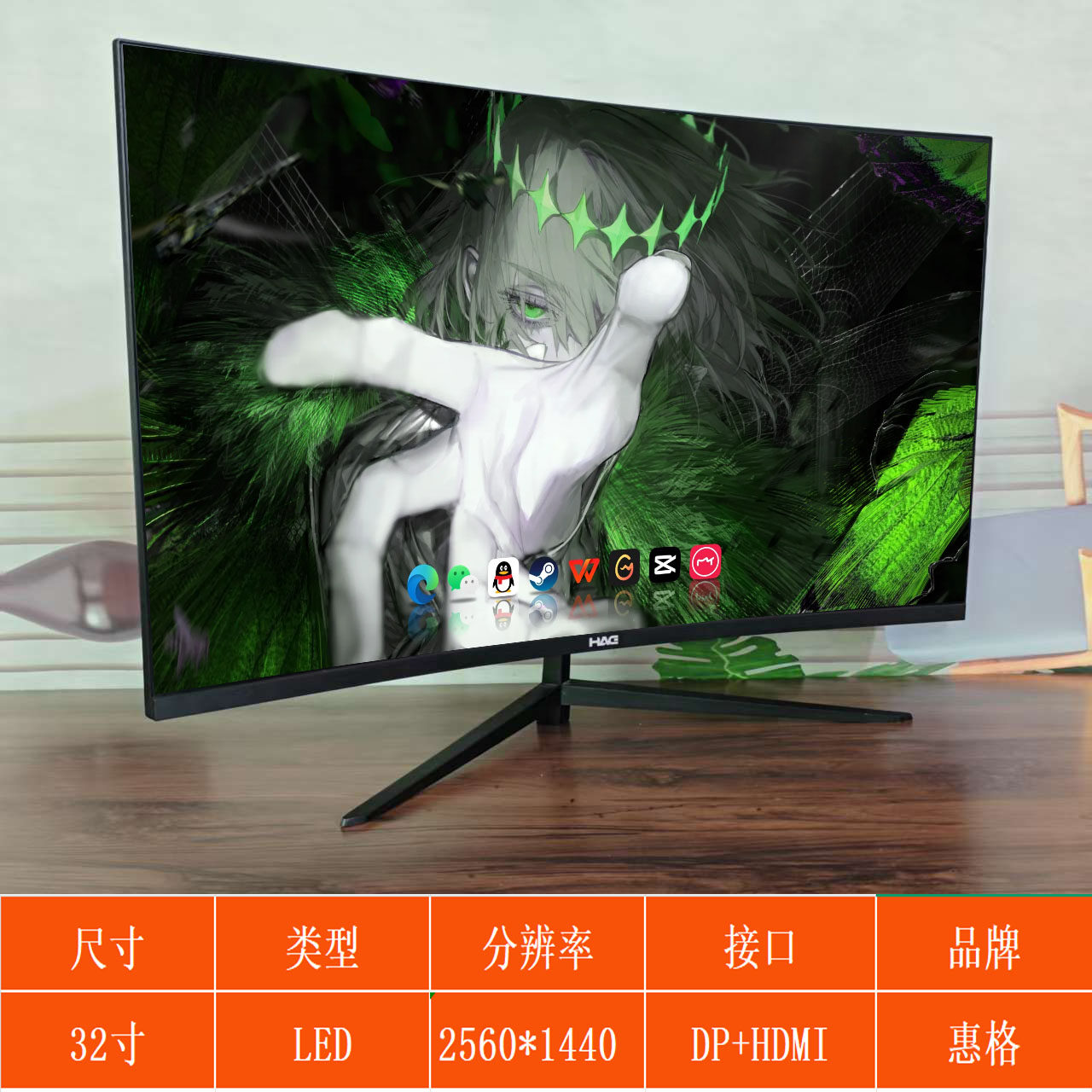 1440高清接口办公娱乐专用 液晶曲面屏2560 32英寸原装 惠格HAG台式