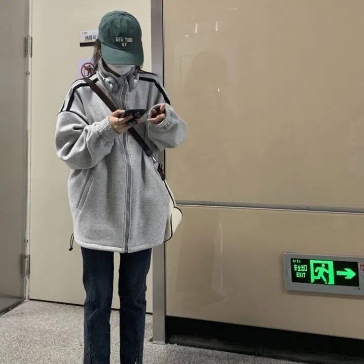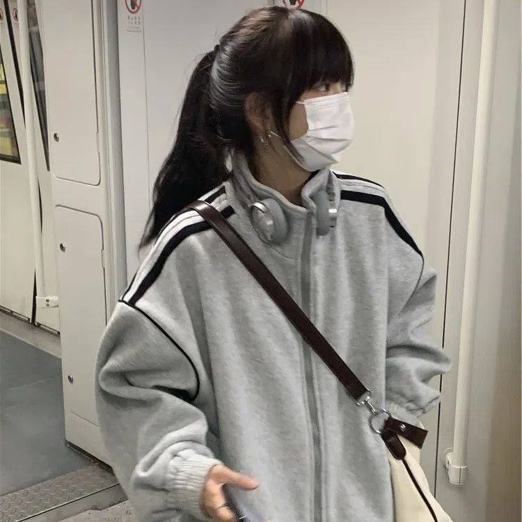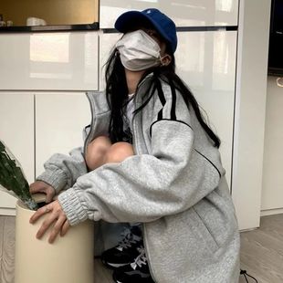 学院风加绒加厚棒球服ins 2025新款 卫衣外套女学生韩版 宽松秋冬季
