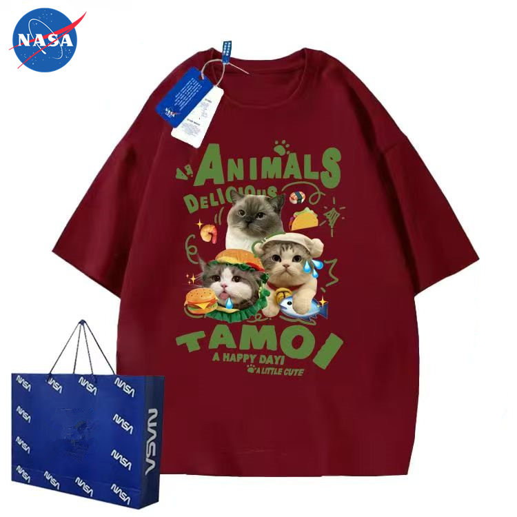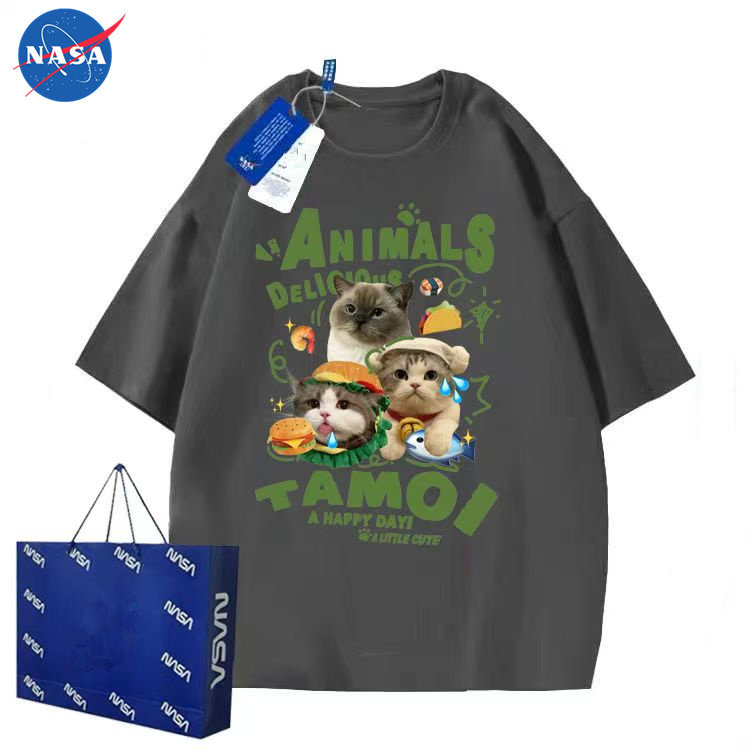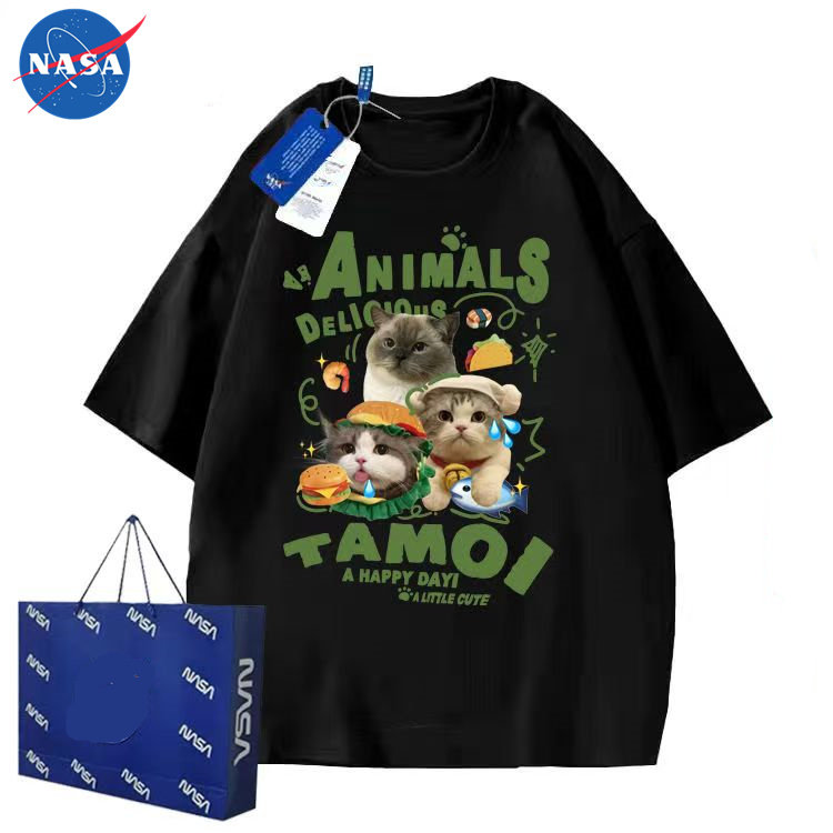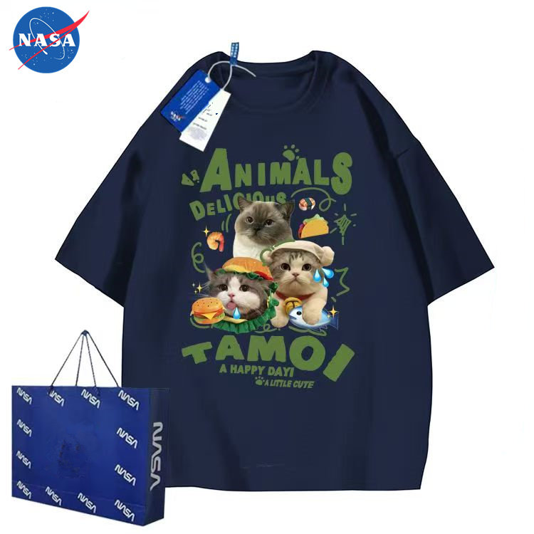 新款 男女夏季 情侣百搭ins上衣潮12 萌宠猫咪图案t恤短袖 NASA美式