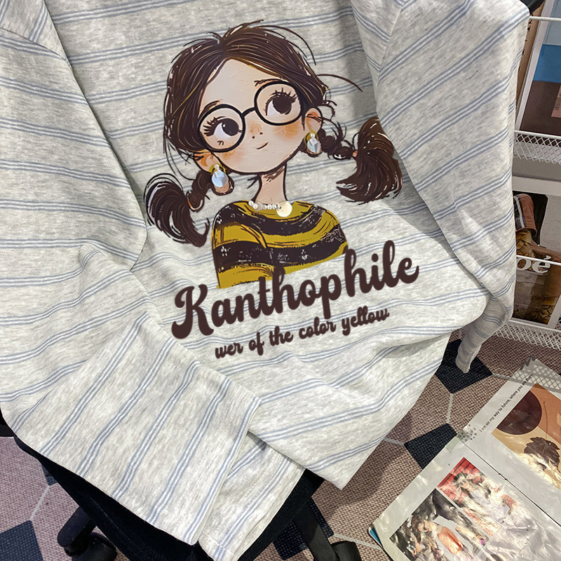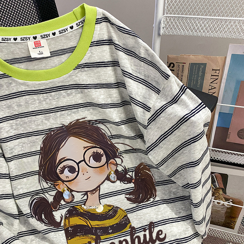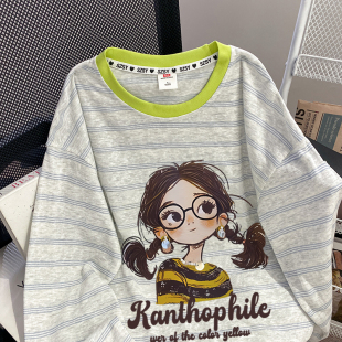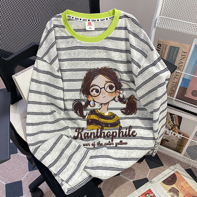 洋气卡通印花宽松上衣韩系条纹防晒长袖 夏季 T恤 300斤特大码 胖mm2