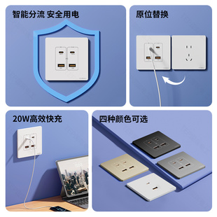 低压36V伏USB c快充PD插座面板20W瓦充电工地学校宿舍专用插 type
