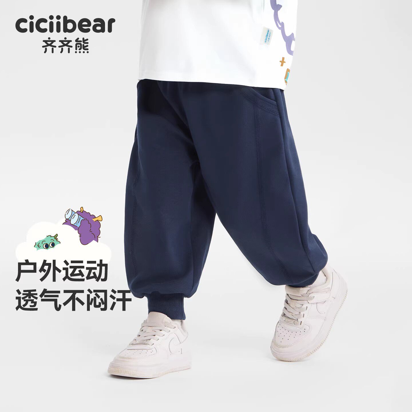 子春秋款 齐齐熊男童裤 宝宝卫裤 儿童运动裤 春季 针织裤 抗菌小魔怪