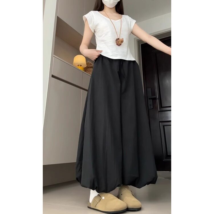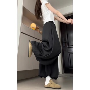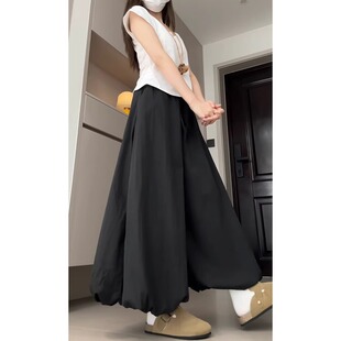 胖mm300斤高腰宽松显瘦灯笼小个子休闲阔腿裤 黑色花苞裙裤 女大码